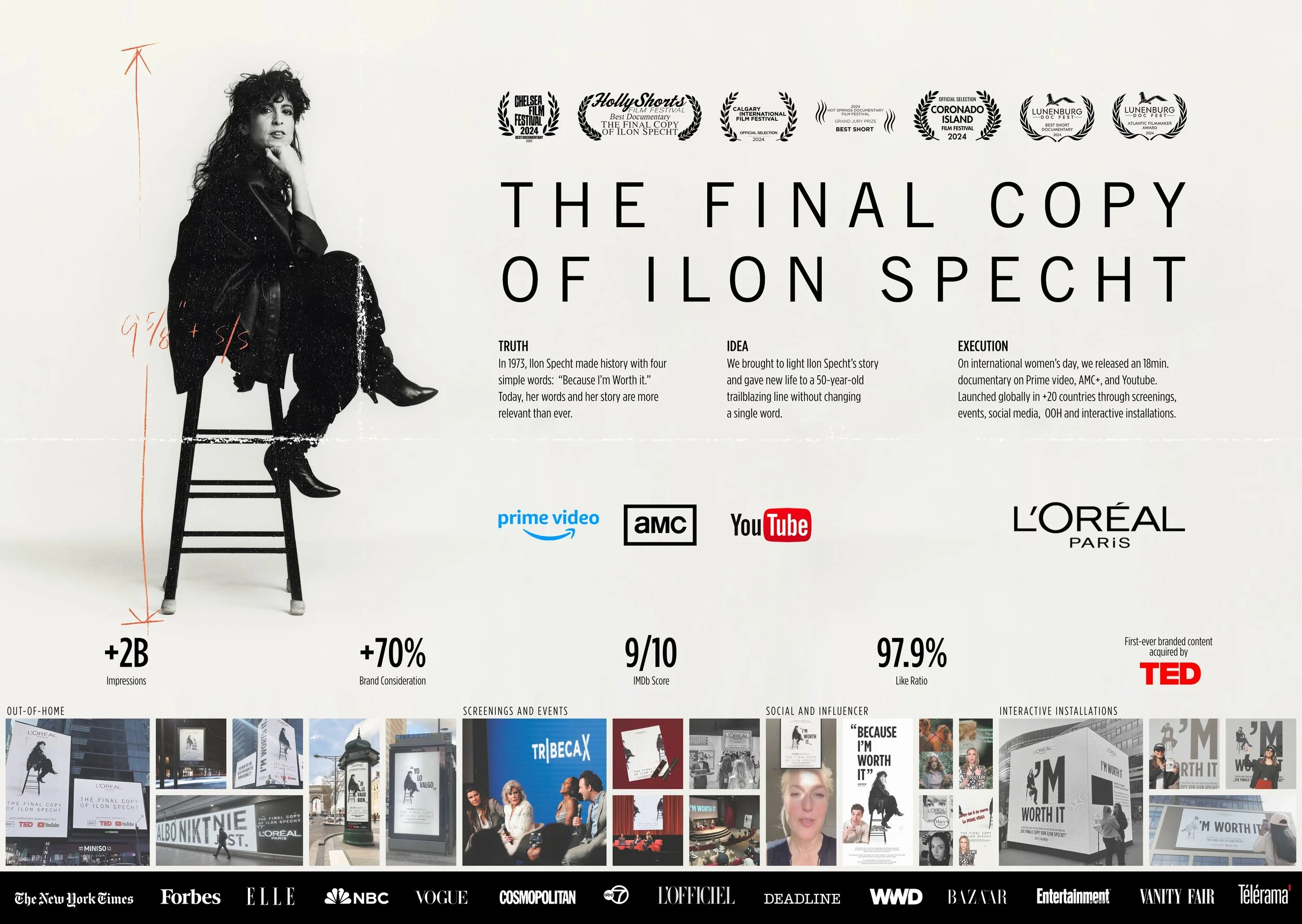 The campaign extended beyond film into a global activation, supported by PR and live events across more than 10 countries, amplifying Ilon Specht’s legacy and bringing her story to new audiences worldwide.